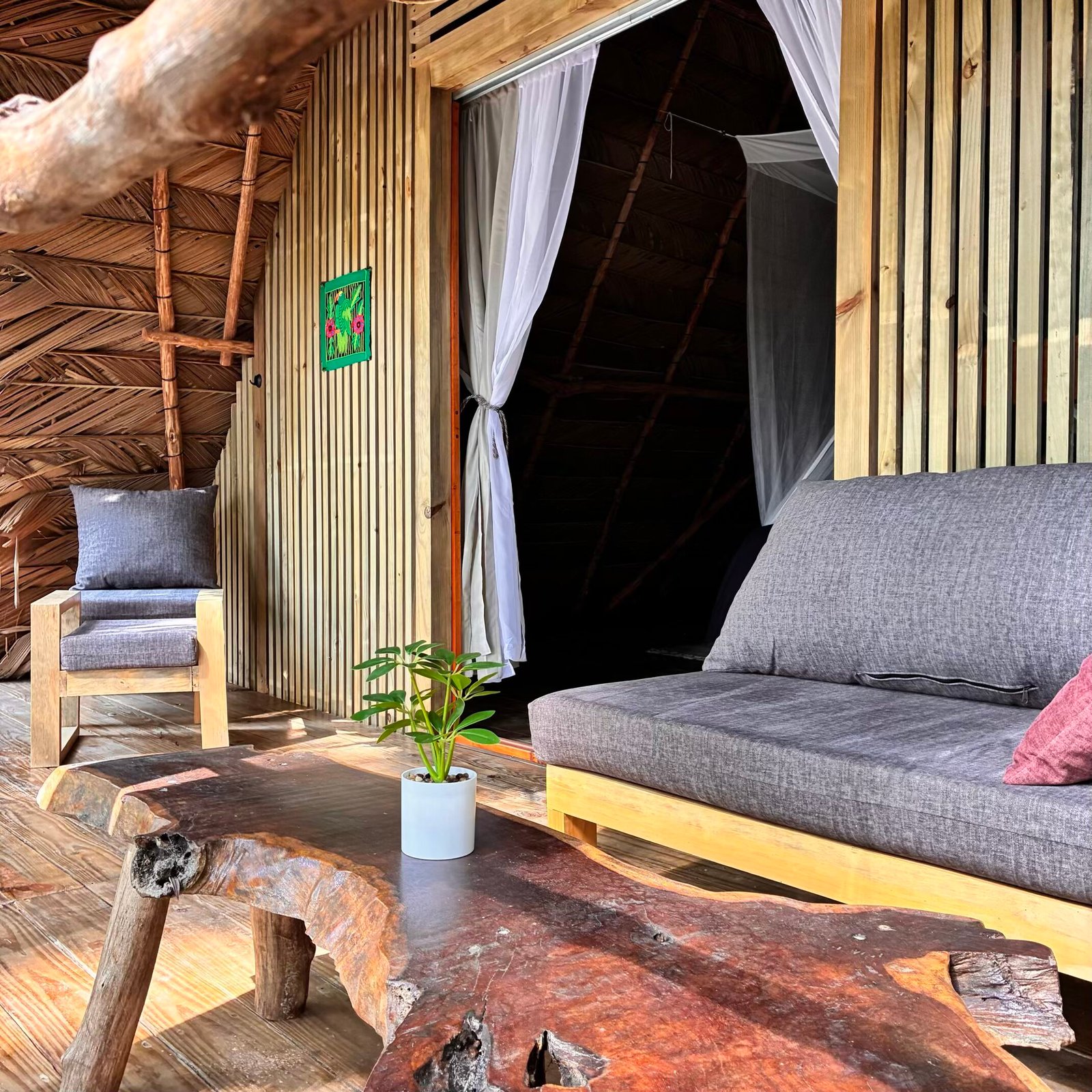 Tucked away in the middle of the jungle, our bar is a vibrant yet laid-back spot where guests can unwind and enjoy a wide variety of drinks. Whether you’re in the mood for a freshly mixed cocktail, an ice-cold beer, a rich cup of coffee, or a refreshing carbonated beverage, there’s something for every taste. The atmosphere is casual and welcoming, with the surrounding jungle creating a unique backdrop. It’s the perfect place to relax, share stories, and savor a drink in paradise.