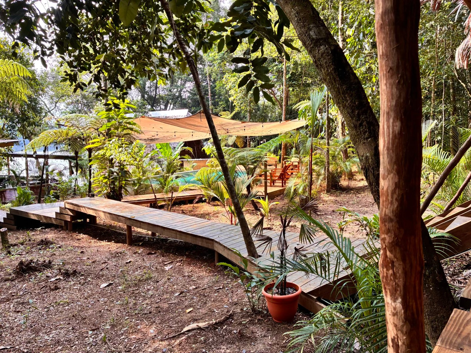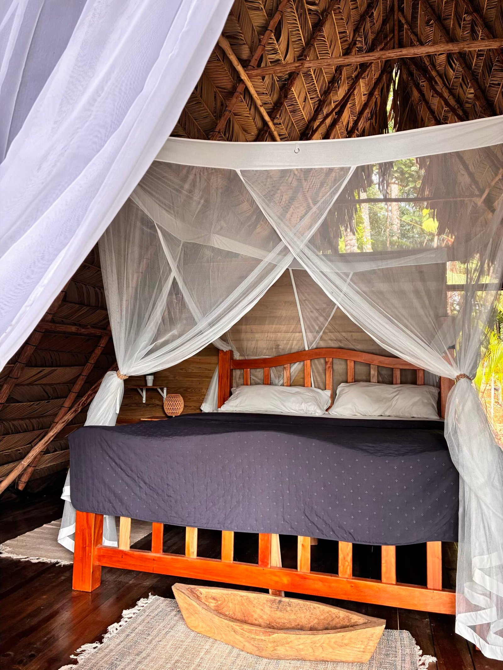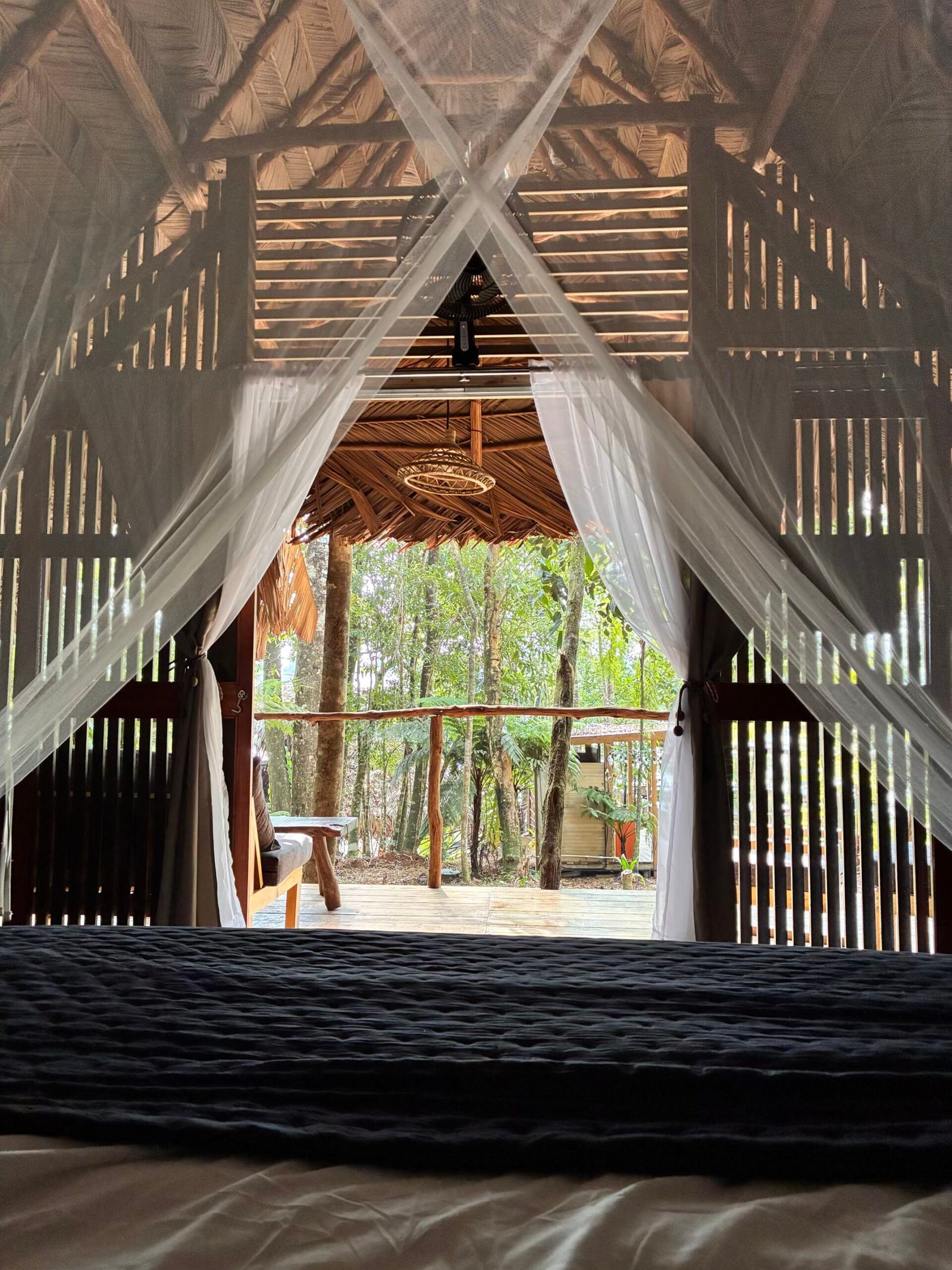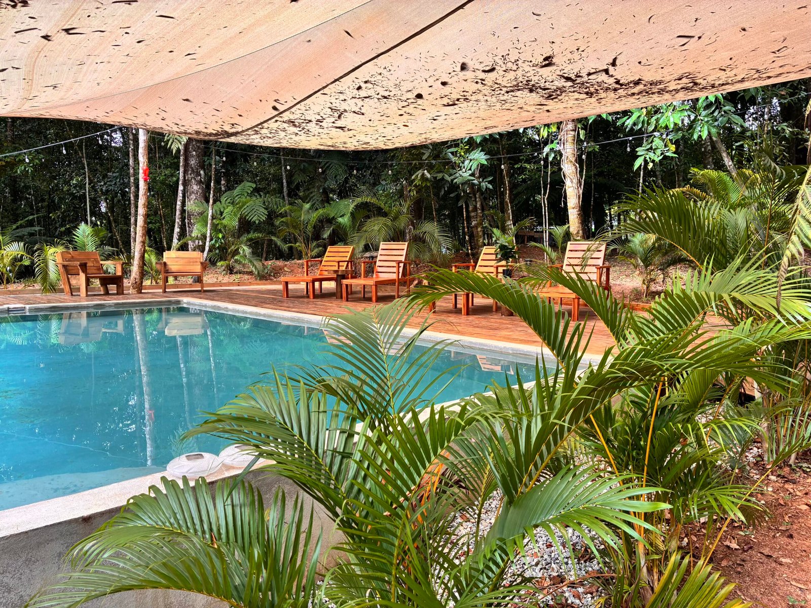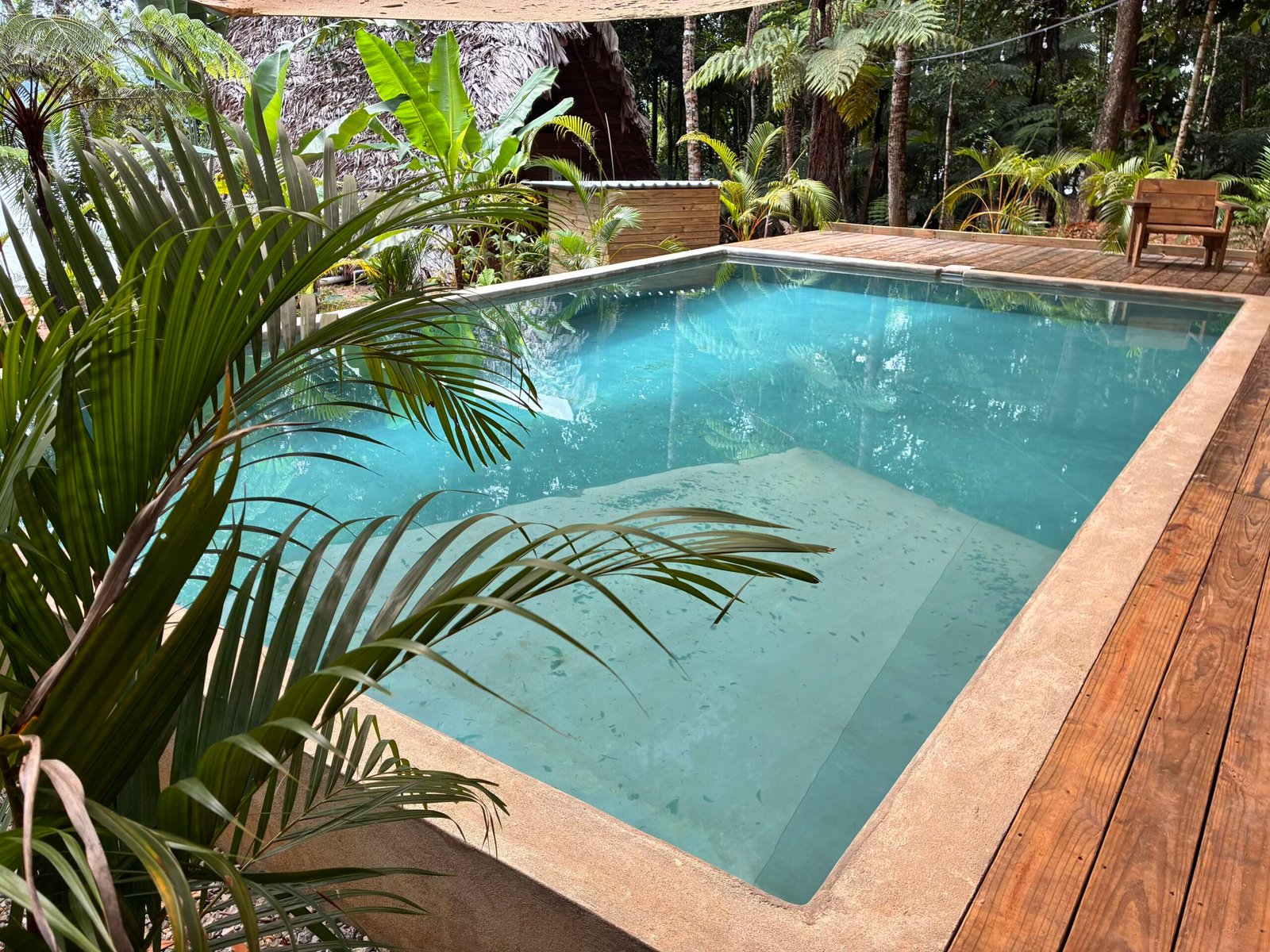The pool is the heart of the retreat, centrally located between the houses and surrounded by lush jungle. Always shaded and naturally cold, it offers a refreshing escape from the tropical heat. Its secluded setting creates a peaceful atmosphere, where guests can relax, swim, or simply enjoy the sounds of the forest. Whether for a quiet morning dip or an afternoon cooldown, the pool is the perfect place to recharge and connect with nature in a serene, inviting environment.