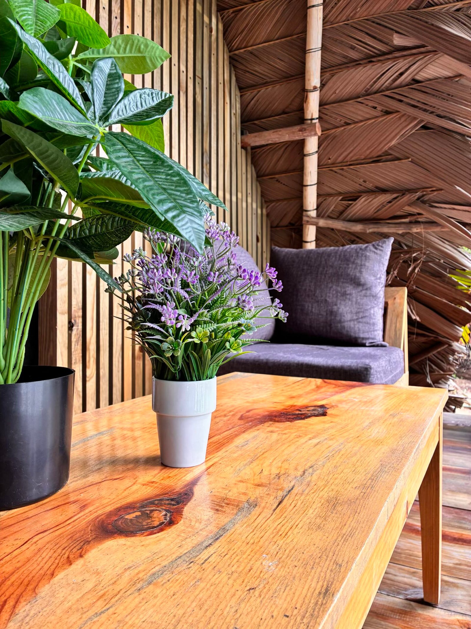 We offer three charming A-frame bungalows, each designed for comfort and a close connection with nature. Every bungalow features a plush king-size bed, ample closet space, and a work desk for those who wish to blend relaxation with productivity. A private toilet and a unique jungle-style outdoor shower bring a touch of adventure to your stay. Two bungalows overlook the sparkling pool, while the third offers serene views of the river. Each has its own private terrace, perfect for morning coffee or sunset unwinding, ensuring every guest enjoys both privacy and the beauty of our tropical surroundings.